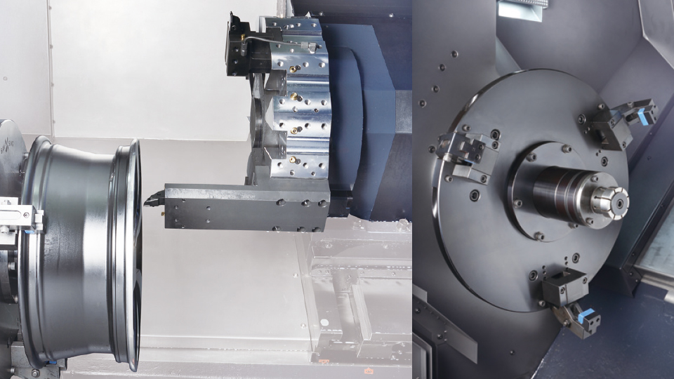 This high-productivity turning center is designed for machining aluminum wheels for motor vehicles and motorbikes etc.