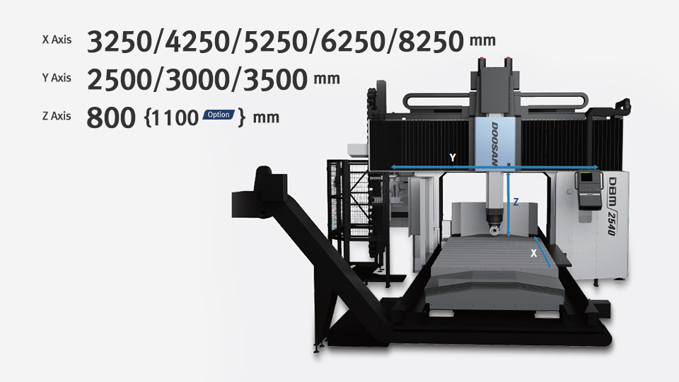 The DBM U is a multi-purpose, double-column machining center that can perform 5-axis machining with the attachment of a universal head. It has a powerful spindle of over 1000Nm, a ram-type structure with an eight-sided support structure, and a double ball screw, which make it suitable for diverse machining applications. Moreover, to enhance precision, it incorporates a ball screw support bearing cooling system and adopts thermal deformation compensation as a standard, making it suitable for high-precision machining.