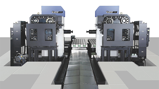 Optimized for bi-directional simultaneous machining of long, symmetrical workpieces, the table can be extended to fit the size of the workpiece.