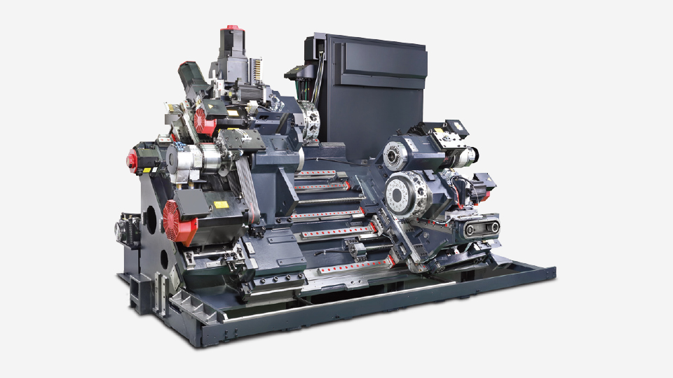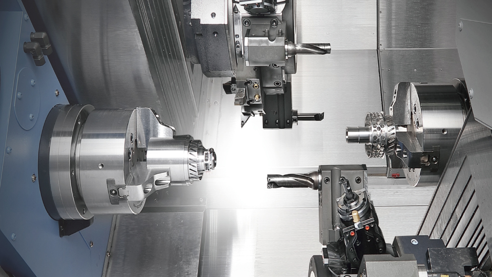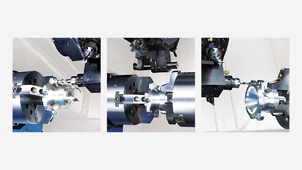The left and right spindles and the upper and lower turrets are able to operate independently to double productivity.