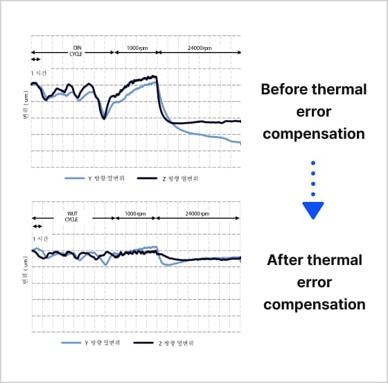 Realizes high-quality, high-precision machining with smoothing thermal displacement compensation of the spindle and structure.