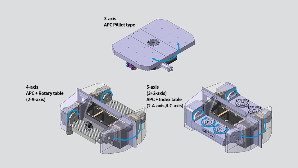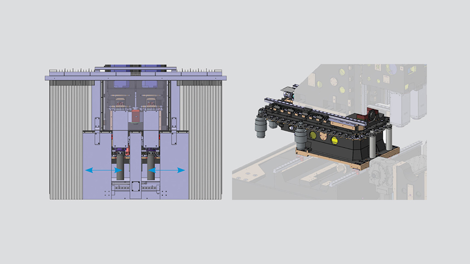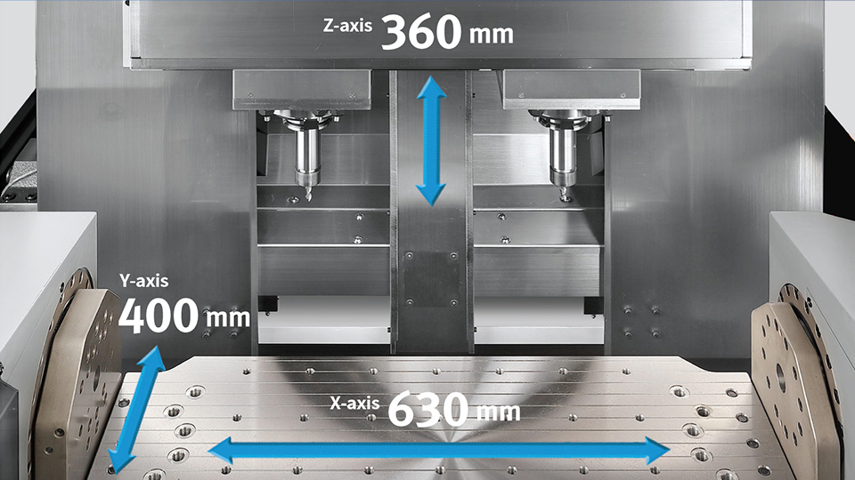 Tool magazines are positioned at the base of the traveling column to ensure high-speed machining performance. (Tool storage capacity: 24*2ea / C-T-C : 3.8 sec)